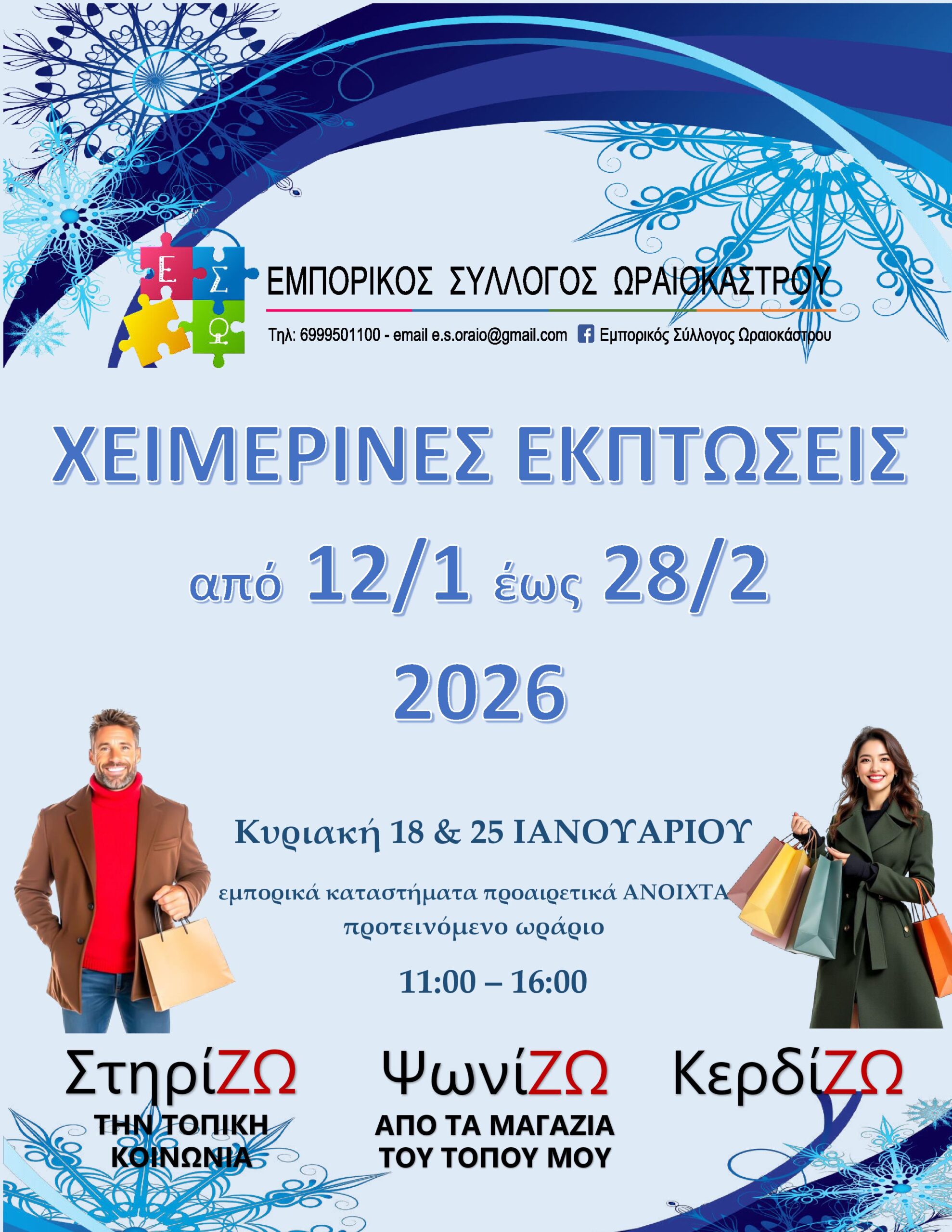 Προτεινόμενο ωράριο λειτουργίας των εμπορικών καταστημάτων για τις Κυριακές 18 και 25 Ιανουαρίου 2026 είναι